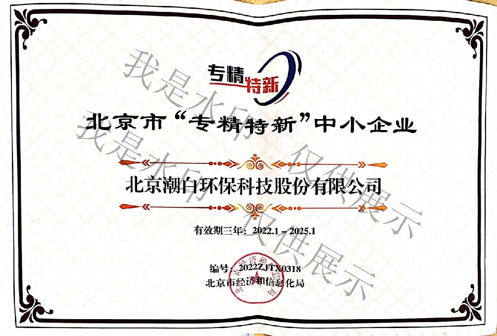 北京潮白环保科技股份有限公司是一家专业从事环境保护与资源循环利用的综合性高新技术企业,注册资金5178万元,成立伊始就组建顾问专家团队加强创新引领,拥有高级、中级职称人员及各类技术人员占比超过50%。
